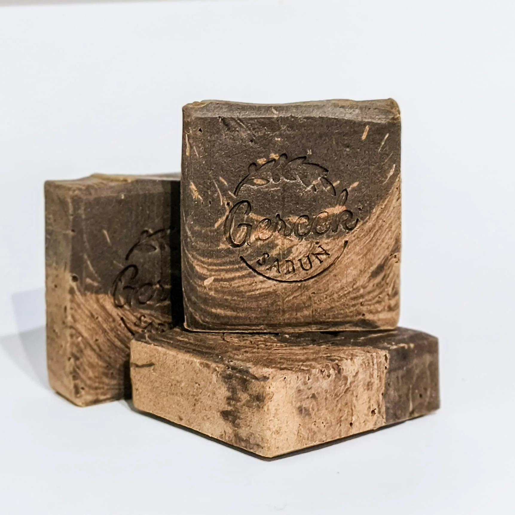 Sabunlarımızı sadece doğal killer, bitkiler, baharatlar ve aktif karbonla renklendiririz.