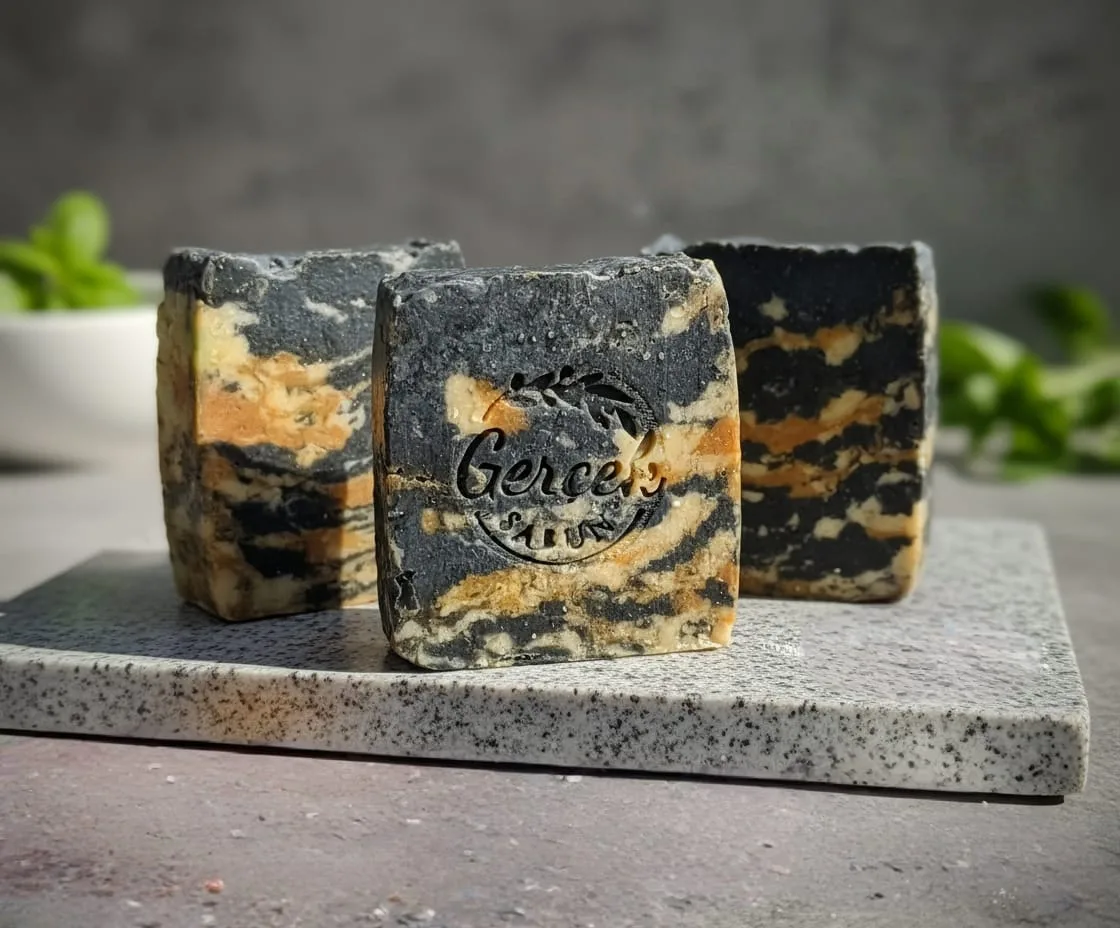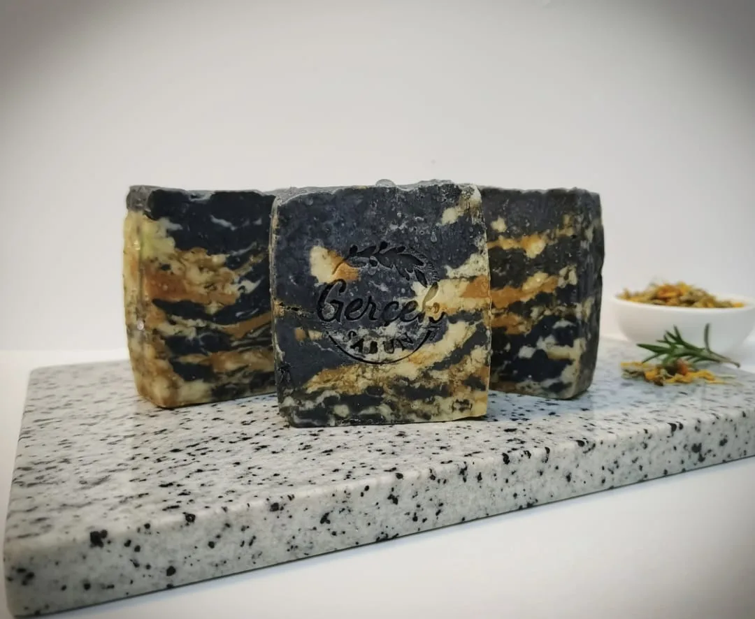 Sabunlarımızı sadece doğal killer, bitkiler, baharatlar ve aktif karbonla renklendiririz.